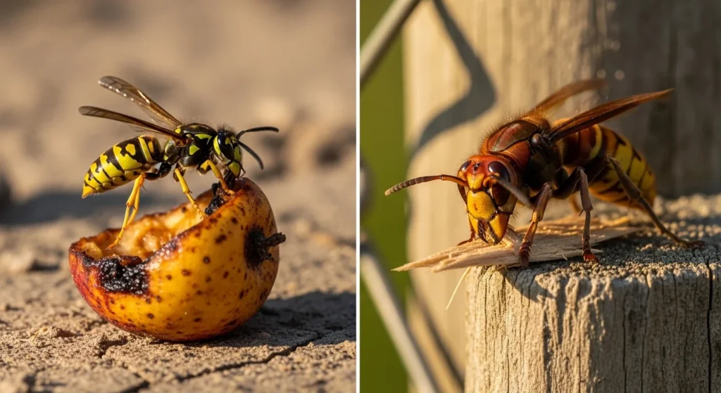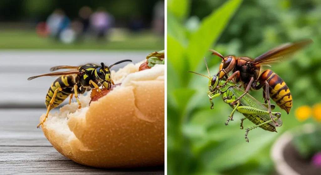 | Paper wasps | Caterpillars, nectar; less aggressive | Beneficial garden predators |